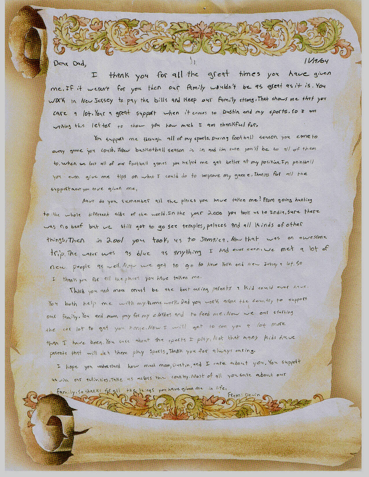 A Very Special Letter From Devin 11/04. Click image then click agian to zoom in.